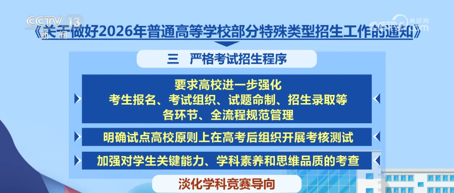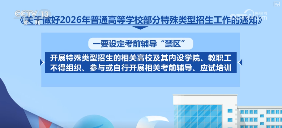 對于2026年普通高校部分特殊類型招生工作,《通知》要求,各地各有關高校建立有效監(jiān)督機制,暢通社會監(jiān)督渠道,及時公開公示有關信息,主動接受監(jiān)督。未按要求公示的考生一律不得錄取,牢牢守住公平公正底線。